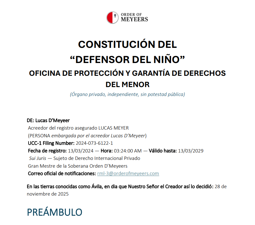 Desde la Soberana Orden D’Meyeers, nuestra misión con el Defensor del Niño es clara: ofrecer protección real, asesoría gratuita y herramientas legales a las familias que enfrentan situaciones de vulneración, tutela forzosa o separación injusta. Actuamos con independencia, compasión y rigor jurídico.